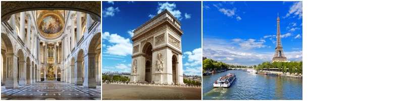 호텔 조식 베르사이유 궁전(월요일 휴관) 중식 후 개선문, 샹젤리제 등 파리 시내 전일 관광 석식 후 호텔 투숙 [선택관광] 에펠탑 + 세느강 유람선 100유로 [HOTEL] 4 STAR HOTEL CLASS [조] 호텔식 [중] 현지식 [석] 현지식